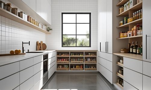 Custom pantry shelving, pull-out drawers, spice racks, walk-in pantry systems.